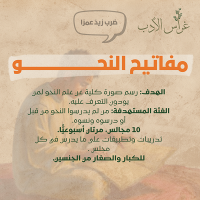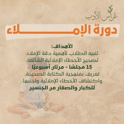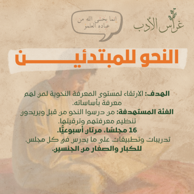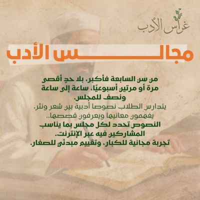 غراس الأدب مؤسسة تعليمية متخصصة في تعليم اللغة العربية وآدابها وعلومها. نسعى لغرس حب اللغة العربية في نفوس أبنائها من خلال مجالس ودورات متنوعة تشمل النحو والإملاء والخط العربي والأدب والكتابة الإبداعية وغيرها.
